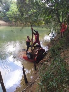 Na manhã de segunda-feira, 15, o Corpo de Bombeiros Militar do Estado de Goiás foi acionado por uma solicitante que se dizia irmã de um homem de 39 anos, sem histórico de doenças mentais, que estaria desaparecido desde a última sexta-feira (12), em Luziânia. As equipes de busca do 5º Batalhão Bombeiro Militar saíram em operações, inicialmente, por áreas indicadas como possíveis de encontrar o homem. Informações de familiares davam conta de que a vítima seria trabalhador rural e que teria sido visto em um bar, por volta de 2 da manhã da segunda-feira. Já na terça-feira, 16, após serem avistados galhos quebrados e marcas de frenagem nas proximidades do Rio Bartolomeu, na GO-010, os mergulhadores da equipe de buscas subaquáticas do @cbmgo foram ao local e encontraram o veículo da vítima e, em seu interior, o corpo de um homem que corresponde com a descrição dos solicitantes. O veículo, um Fiat Uno vermelho, estava submerso a uma profundidade de, aproximadamente, 4 metros, e com as rodas viradas para cima. Foi necessário o uso de um guincho para tirar o carro do fundo do rio. No local, o corpo e demais bens materiais foram resgatados e ficaram sob a custódia da equipe da Polícia Militar. Os bombeiros de Luziânia atuaram nas buscas durante mais de 30 horas.