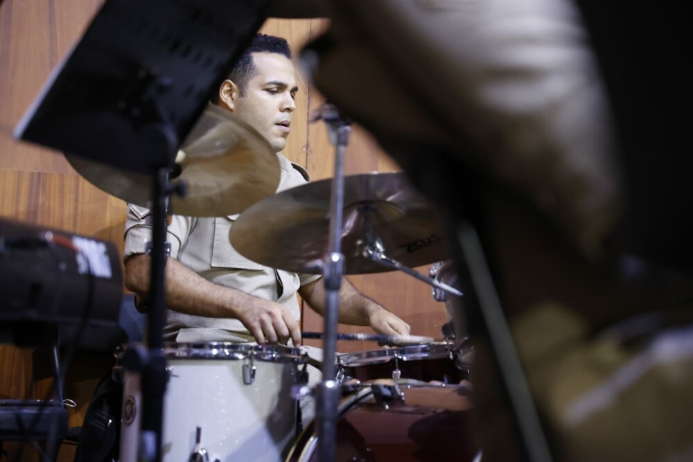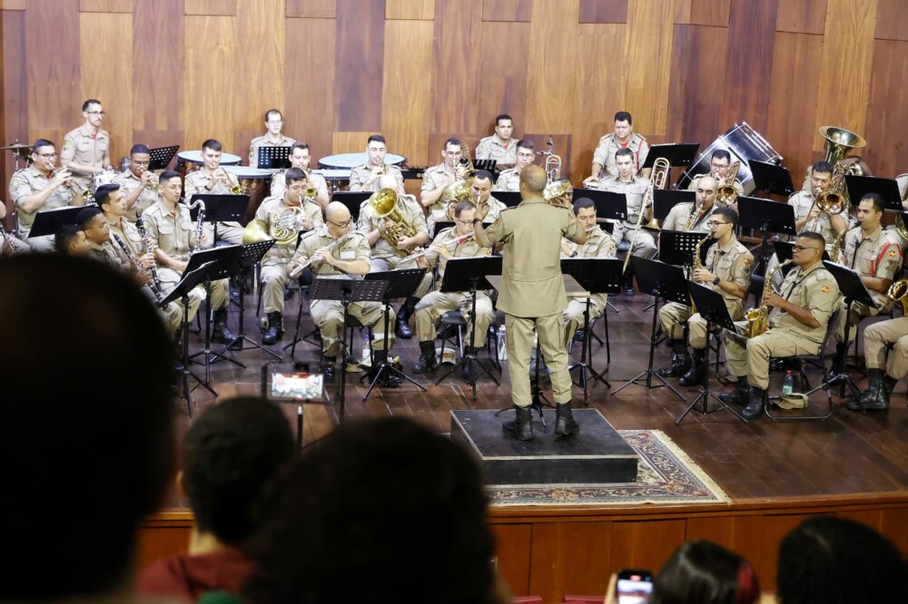 O Corpo Musical do Corpo de Bombeiros Militar do Estado de Goiás (CBMGO) realizou nesta quarta-feira, 26, uma apresentação especial no projeto Música na Escola de Música, promovido pela Escola de Música e Artes Cênicas da UFG. O evento aconteceu no Teatro Belkiss Spenciere Carneiro de Mendonça e reuniu um público diversificado, incluindo alunos, professores e amantes da música. Com um repertório que transitou entre o erudito e o popular, a banda demonstrou toda a sua versatilidade e excelência musical, emocionando os presentes. O projeto, que ocorre de março a dezembro, tem como objetivo promover a qualidade musical e ampliar o acesso da comunidade goiana à arte.