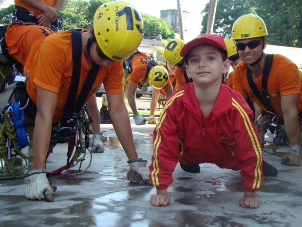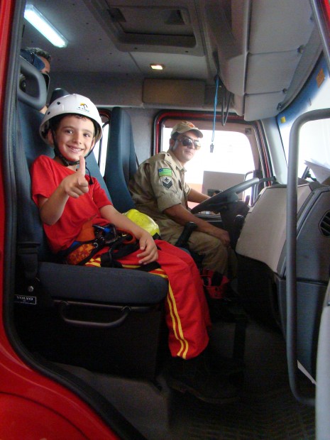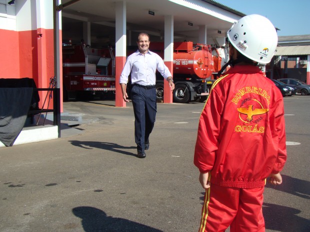 Na manhã de segunda-feira, dia 29, o pequeno Mateus, de 6 anos, realizou o sonho de conhecer um quartel do Corpo de Bombeiros Militar do Estado de Goiás (CBMGO). Fã do trabalho da Corporação, a criança teve a oportunidade de participar um pouco do cotidiano do 1º Batalhão Bombeiro Militar. Ele fez rapel, acompanhou o treinamento da formatura do Curso de Formação de Oficiais e pôde dar uma volta em um caminhão de combate a incêndio. Mateus estava acompanhado de seus pais e agradeceu o dia inesquecível que teve ao lado dos bombeiros. A reportagem da TV Record, com o apresentador Oloares Ferreira, registrou todos os momentos da visita. Confira fotos: