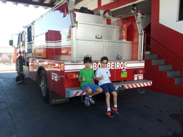Os pais de Ricardo Gomes Cesário Silva Júnior e Pedro Centini pediram às crianças que escolhessem passeios para fazerem durante as férias, na cidade de Goiânia. E constou entre os vários programas eleitos uma visita ao Corpo de Bombeiros. O Cel Hárisson de Abreu Pancieri recebeu as crianças realizando um tour pela região metropolitana, que incluiu visitas a unidades operacionais,ao Programa Bombeiro Mirim e ao COB. Os meninos disseram que iriam relatar a visita no primeiro dia de volta às aulas. Confira as fotos: