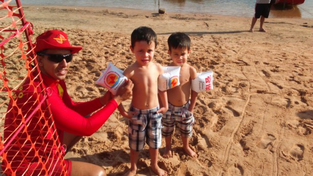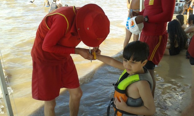 Para aumentar a segurança das crianças que estão aproveitando as férias nas margens do Rio Araguaia, a Operação Férias Turista Seguro 2015 está distribuindo boias de braço para meninos e meninas de até 5 anos de idade. A principal vantagem do modelo é que ele dá mais liberdade para a criança brincar com segurança na água.