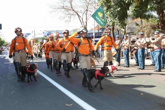 O CBRESC participou também do desfile cívico-militar na cidade de Trindade em comemoração ao seu 96º aniversário. Durante o evento, os cães foram bastante admirados pelo público em geral. Todos curiosos para saber sobre esses animais que prestam um belo serviço à comunidade junto aos bombeiros. Já na sexta feira, 1º de setembro, os alunos tiveram uma instrução de Cinoterapia (terapia com cães) com o Capitão Rodrigo, do Corpo de Bombeiros Miliar de Mato Grosso do Sul (CBMMS). O militar, pioneiro do serviço no Estado do Mato Grosso do Sul, relatou experiências e ensinou técnicas para o desenvolvimento desse tipo de atividade. Ainda na sexta-feira, já no período da tarte, o CBRESC participou da apresentação das instalações do 1º Batalhão Bombeiro Militar (1º BBM), no centro de Goiânia, aos novos cadetes da Corporação. Na oportunidade, o serviço com cães foi divulgado aos recém-chegados. Alguns demonstraram interesse em participar, no futuro, da equipe de Busca, Resgate e Salvamento com cães (BRESC).