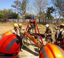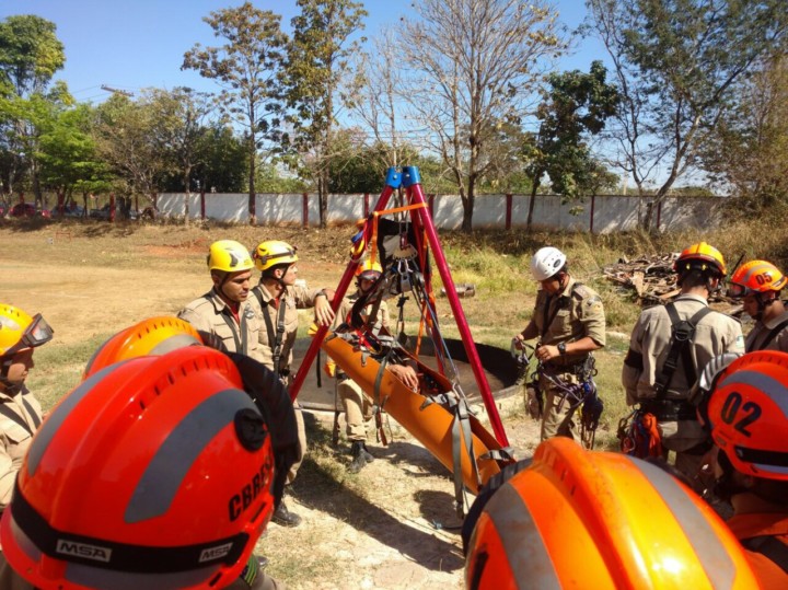 O 1º Curso de Busca, Resgate e Salvamento com Cães (CBRESC) do CBMGO, em sua quarta semana de atividades, participou de treinamentos de busca rural com cães e busca à vítimas de afogamento. A ação foi realizada em Anápolis. Na oportunidade, os aspirantes à condutores de cães de busca e salvamento percorreram um córrego local aprendendo a buscar com o auxílio do faro do cão. Durante 3 quilômetros, rio abaixo, os alunos puderam exercitar os conhecimentos e procedimentos exigidos nesse tipo de atividade. Ainda o CBRESC teve instrução de salvamento de vítimas em espaço confinado, aprendendo a realizar as ações através de amarrações e montagem de sistemas, de modo a retirar, de maneira segura, vítimas que venham estar nesses espaços confinados. O instrutor, Tenente Victor, realizou dinâmicas práticas, descrevendo e apresentando materiais para os alunos manusearem e executarem salvamentos.