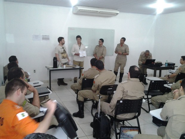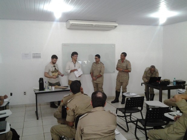 O Curso de Especialização em Gerenciamento de Segurança Pública (Cegesp/2013) recebeu na manhã desta segunda-feira, dia 16, uma palestra ministrada pelos analistas ambientais Luiz Alfredo Costa Freitas e Tiago Quaggio Vieira, do Instituto Chico Mendes de Conservação da Biodiversidade (ICMBio), órgão ambiental do governo brasileiro. Os profissionais falaram sobre o sistema nacional de unidades de conservação da natureza. Durante a palestra, foi possível tirar dúvidas e esclarecer sobre o sistema que é de fundamental importância para a preservação das áreas e dos biomas no País. A palestra, ministrada na Academia Bombeiro Militar, faz parte da disciplina Legislação Ambiental, que tem como professor o Major Alencar, chefe da BM-5.