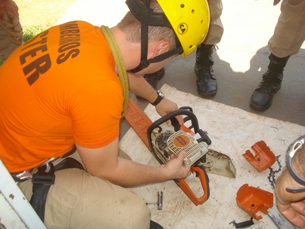 O Curso de Especialização em Salvamento Terrestre(CESTER), está nesta sexta-feira, dia 9, completando quatro semanas de atividades. Desde então vem se desenvolvendo no sentido de especializar o militar para o desenvolvimento de atividades de salvamento terrestre, aprimorar seus conhecimentos e instruí-los com novas técnicas e emprego de equipamentos existentes atualmente na Corporação, assim, permitindo maior desenvoltura do militar nas missões de busca e salvamento, além de capacitá-lo a executar operações de salvamento terrestre com eficiência e eficácia e orientá-lo para que seja um agente multiplicador de conhecimentos. Abaixo estão os registros de alguns dos momentos deste curso, que são Treinamentos Físicos, Resgate de vítima utilizando técnica da Escada Rebatida no 2º Batalhão Bombeiro Militar, Flutuação, Corte de Arvores e Instrução sobre SCI, Nós e Amarrações, Manutenção de Motosserras, dentre outros. O curso tem data prevista para término no dia 5 de dezembro, com uma carga horária total de 285 horas, com capacitação de 28 militares. Confira fotos: