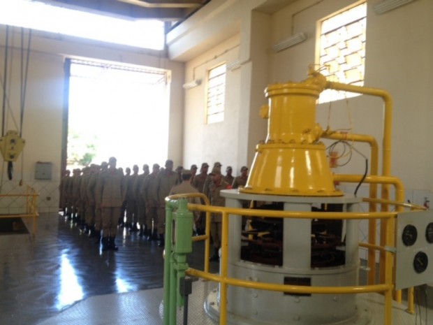 Na semana passada, os Alunos do Curso de Formação de Oficiais CFO-I / 2013 realizaram uma visita técnica na usina hidrelétrica de Rochedo, em Professor Jamil. A instrução foi ministrada e acompanhada pelo Tenente Leonardo, instrutor da disciplina de Eletricidade 1. Foram apresentados os principais equipamentos e os fundamentos básicos sobre a geração de energia elétrica em uma hidrelétrica. Além disso, foi destacado alguns aspectos e procedimentos de segurança dentro deste tipo de ambiente, bem como os principais cuidados a serem levados em consideração quando na atuação em ocorrências que possam a acontecer neste tipo de usina envolvendo materiais energizados.