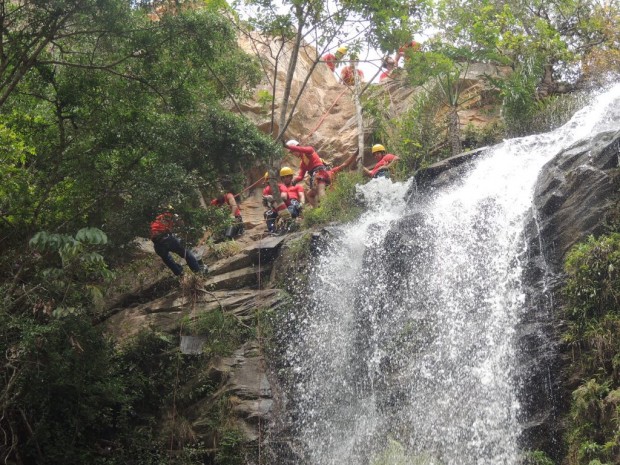 No treinamento, os alunos puderam identificar situações de riscos comuns neste tipo de ambiente, bem como estabelecer as medidas de controle e segurança necessárias. Com altura de 70 metros, a cachoeira recebe inúmeros visitantes e praticantes de atividades como rapel, caminhadas, mountain bike e trilhas, o que potencializa riscos de acidentes.  Confira fotos:
