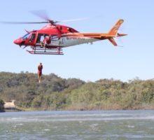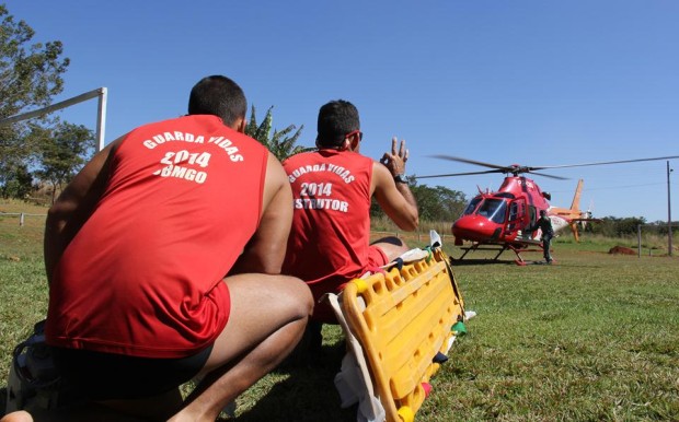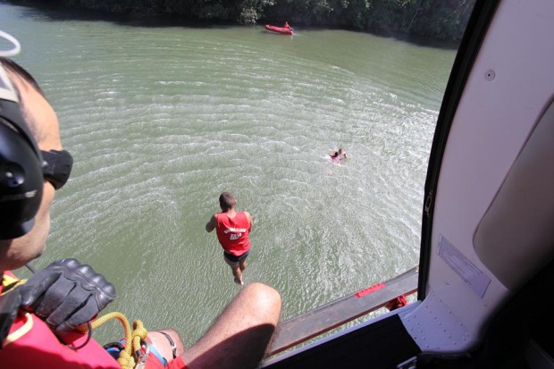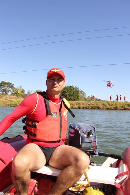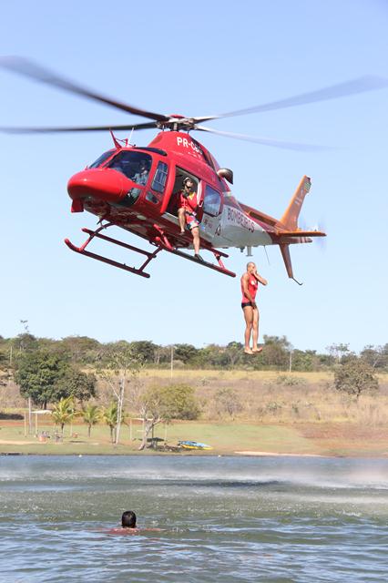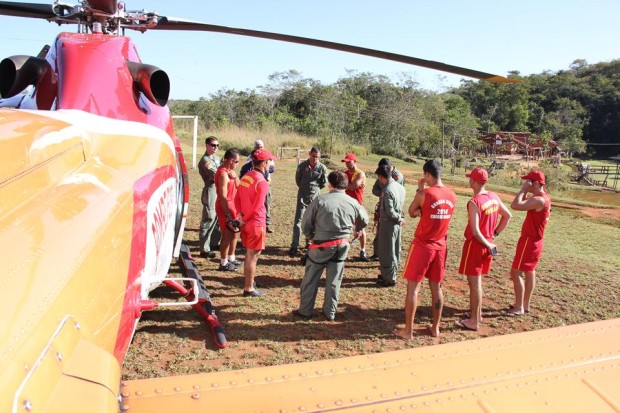 As atividades de salvamento aquático e salvamento com embarcações foram realizadas entre os dias 30 de junho e 1º de julho no Rio Paranaíba e Lago de Furnas em Itumbiara. O 2º Tenente Leonardo Castro foi o responsável por ministrar a instrução prática de atendimento pré-hospitalar, no Batalhão de Salvamento em Emergência (BSE), em Goiânia. Já o treinamento com a participação do Helicóptero Bombeiro 01 foi realizado na Fazenda Santa Branca, em Terezópolis de Goiás. Os alunos puderam colocar em prática técnicas com o uso do equipamento sling (içamento de vítimas em meio aquático) e ainda o salto de Guarda Vidas da aeronave para abordagem de vítimas em situação de afogamento. As instruções envolveram militares do Comando de Operações Aéreas – COA, bem como a equipe de coordenação do GV 2014.  Confira fotos das atividades: