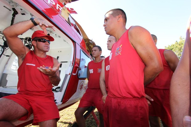 O curso de Guarda Vidas 2014 (GV-2014) do Corpo de Bombeiros Militar do Estado de Goiás (CBMGO) concluiu a 6ª semana de instruções com atividades práticas em rios e lagos, envolvendo embarcações, salvamento aquático e salvamento com o uso do Helicóptero Bombeiro 01. Os alunos tiveram ainda instruções práticas de Atendimento Pré Hospitalar – APH, com ênfase em atendimento de vítimas de afogamento. A última semana do GV-2014 será com a prova prática de reboque de vítima sem equipamento básico por, no mínimo, 100 metros e um provão teórico reunindo todo o conteúdo ministrado ao longo das aulas.