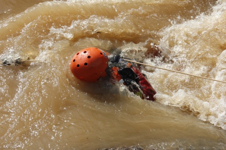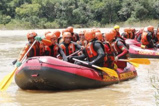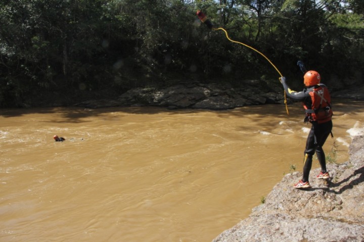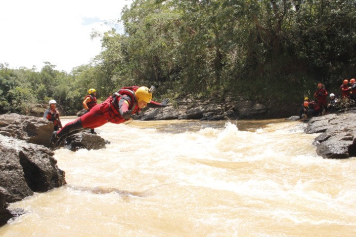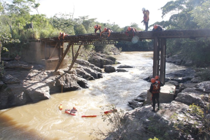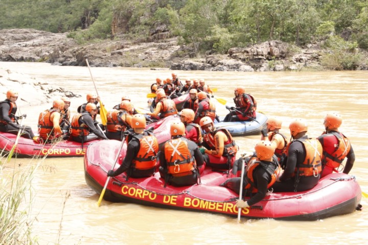 O Curso de Intervenção e Operações de Salvamento em Desastres CIOSD do CBMGO realizou na primeira semana do mês de fevereiro o módulo em desastres hidrológicos. Diversas técnicas foram utilizadas como isca viva, abordagem com arremesso do saco de resgate, transposição de obstáculos, soltura rápida, entrada pranchada, nado fierring, nado defensivo e nado ofensivo. Além disso, na segunda fase dos treinamentos foram realizadas instruções com o uso da embarcação bote, aulas ministradas por Guilherme Pelegrini Prededon, especialista em canionismo, cachoeirismo, rafting e escalada da empresa Rafting Chapada dos Veadeiros. Temas como condução e estabilização de botes, ângulo de fierring, transposição de refluxos e correntezas fortes com uso do bote foram abordados nas aulas. As instruções foram divididas em duas fases sendo a primeira no Rio Areias, em Alexânia, e a segunda no encontro dos Rios Tocantizinho com Ribeirão São Miguel na Chapada dos Veadeiros, próximo ao povoado de São Jorge.