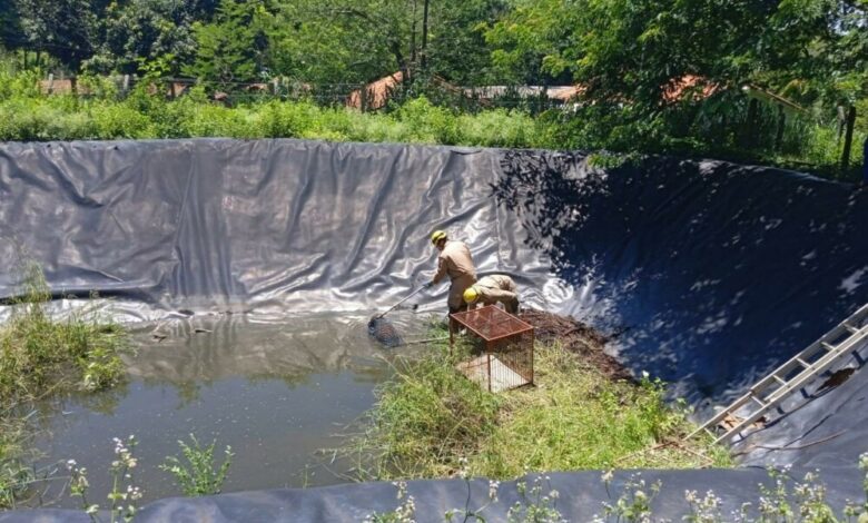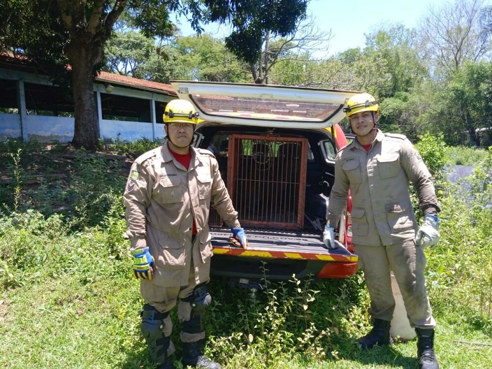 8º BBM resgata cão e capivara que cairam em um foço na UFG em Goiânia