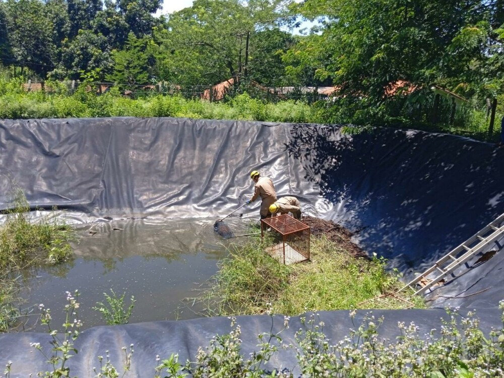 Os animais caíram no foço e não conseguiam sair devido à proteção com lona existente no local. Utilizando técnicas de captura, laço de luz, escada e gaiola, os militares retiraram o cão e capturaram a capivara, realizando orientações aos zeladores das instalações para proteção e prevenção para futuras quedas de animais. Capivara pertencia ao plantel de pesquisa da UFG e foi liberada no local, juntamente com o cão.
