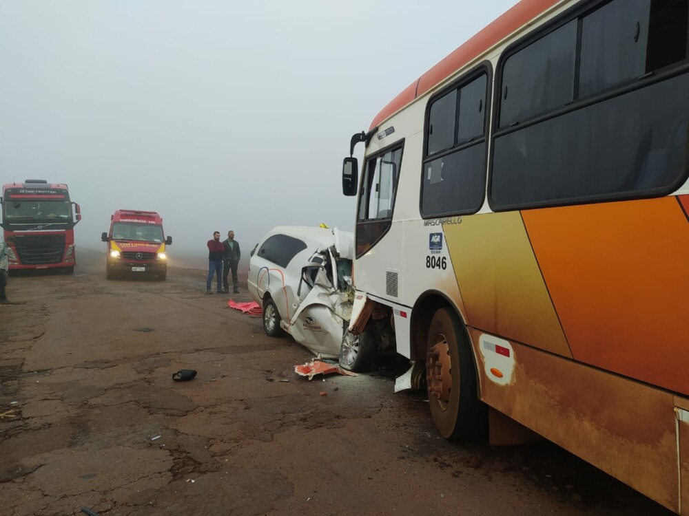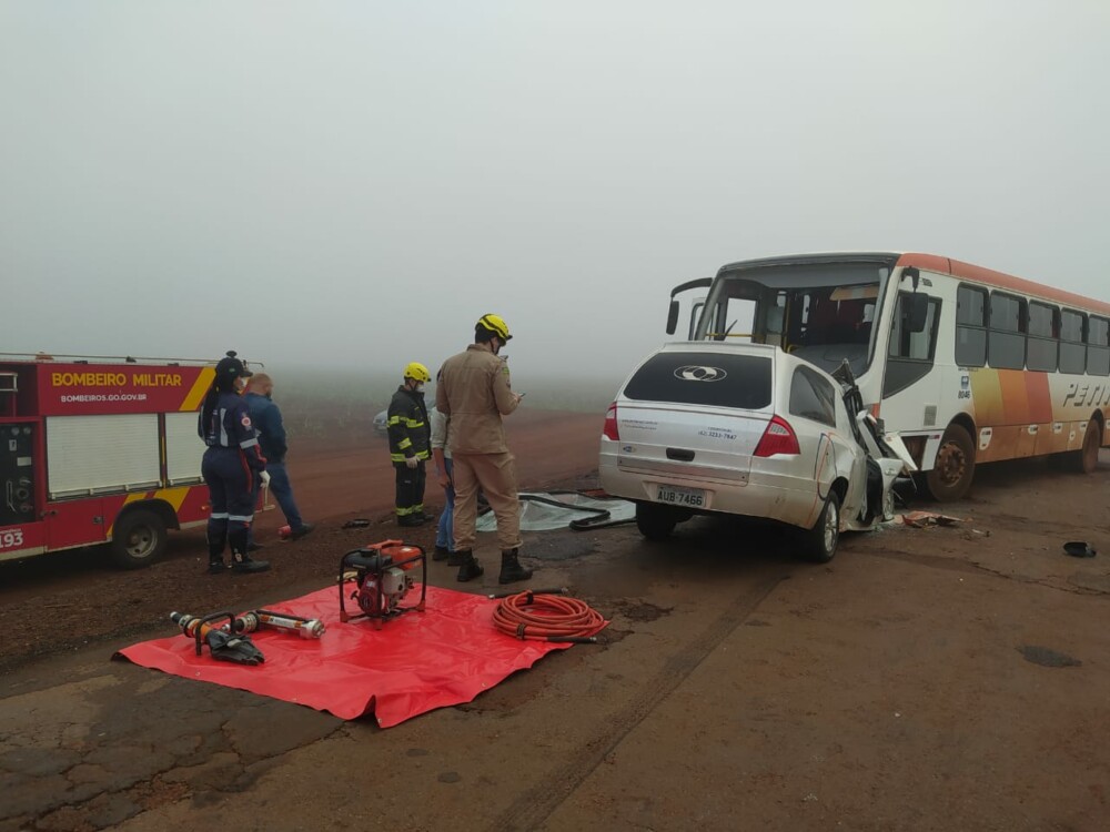 Bombeiros acionados para acidente entre carro e ônibus na GO 040, zona rural de Goiatuba
