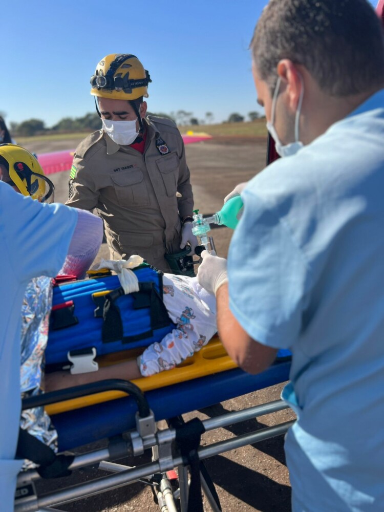 Uma criança de 5 anos do sexo masculino apresentava ferimentos graves, incluindo trauma abdominal, fratura na coluna lombar, cintura pélvica e luxação no fêmur. O estado de consciência da criança era baixo, e ela foi entubada pela equipe médica no Hospital Municipal de Pires do Rio.