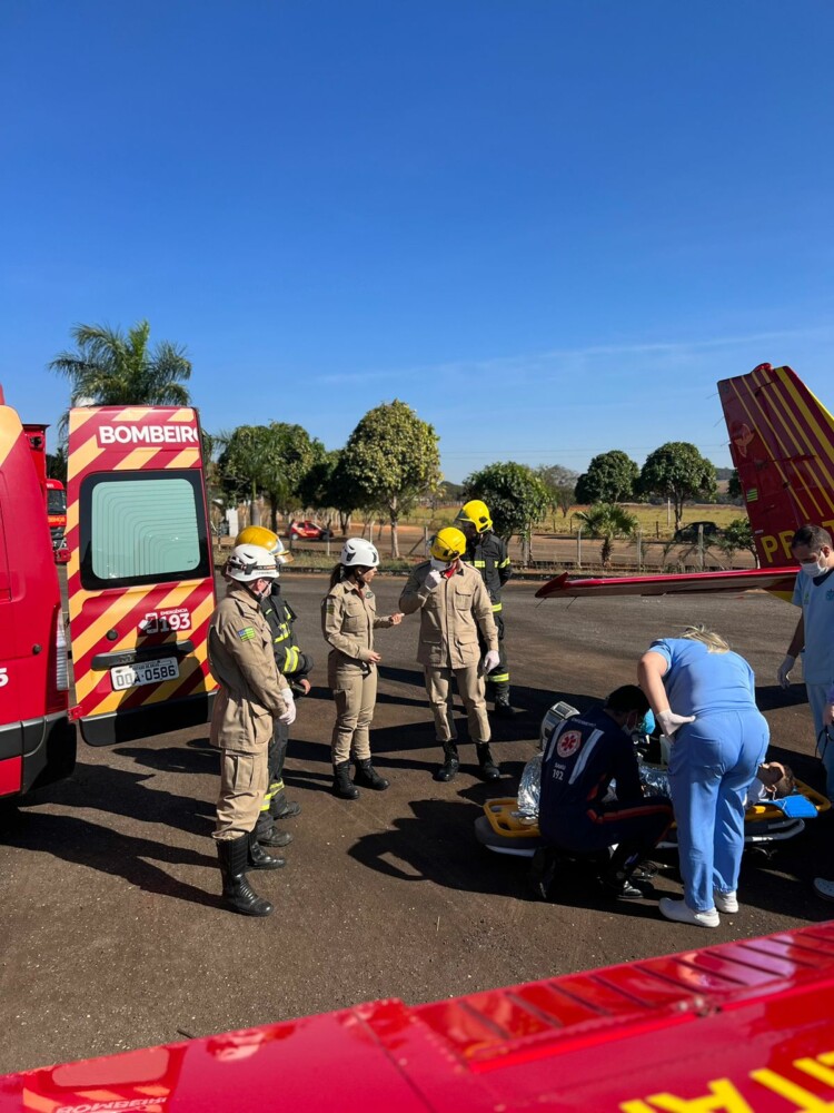 Diante da gravidade dos ferimentos da criança de 5 anos, a aeronave BOMBEIRO 05 do Corpo de Bombeiros Militar do Estado de Goiás foi acionada para transportá-la ao Hospital de Urgências de Goiânia (HUGOL). Já o adolescente de 16 anos, cujo estado é estável, será levado de ambulância ao mesmo hospital devido às fraturas sofridas. O local do acidente ficou sob os cuidados da Polícia Rodoviária Estadual após os atendimentos médicos.