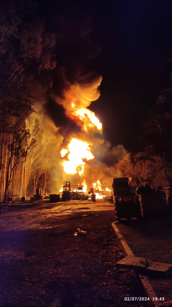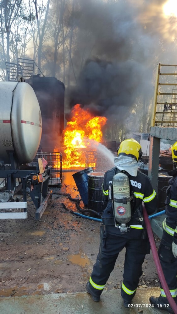 Bombeiros em Goianira foram acionados na tarde de terça-feira, 2, para combater um incêndio de grandes proporções em uma indústria local. A ocorrência envolveu múltiplas explosões e o foco principal do fogo era um conjunto de carretas e um tanque contendo 17 mil litros de Tolueno, um produto químico altamente inflamável.