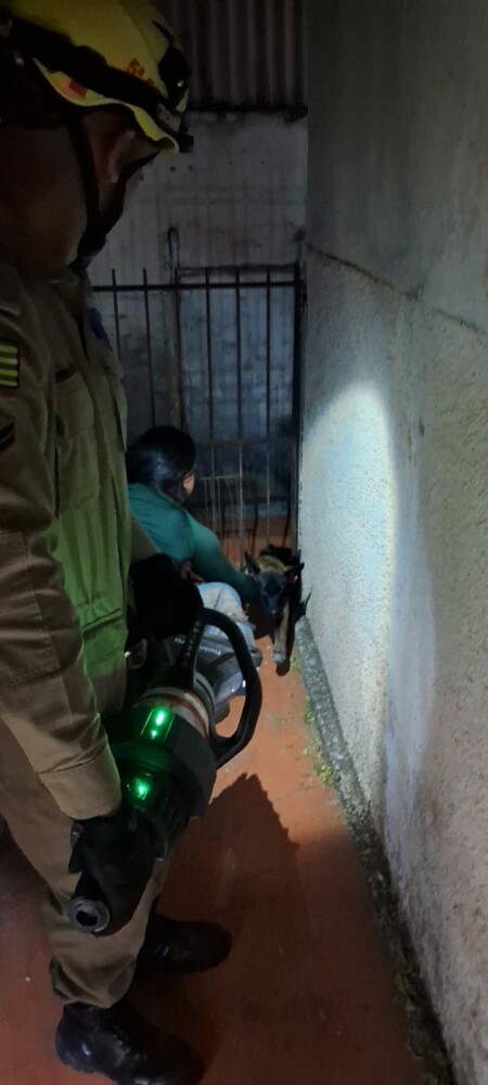 Na noite de quinta-feira, 11 de julho, a guarnição de salvamento dos bombeiros de Goiatuba foi acionada para uma missão inusitada: resgatar um cachorro que havia ficado preso na grade de um portão. O animal, de porte médio, ficou retido entre as barras metálicas, deixando-o incapaz de se libertar por conta própria. Rapidamente, os bombeiros se dirigiram ao local da ocorrência, munidos com equipamentos especializados para o resgate de animais.