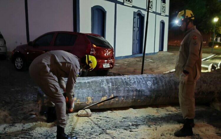 Bombeiros de Pirenópolis acionados para ocorrência de queda de palmeira imperial