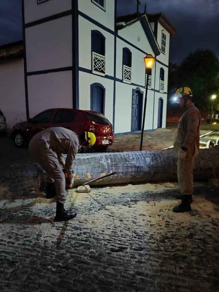 No domingo, 21, por volta das 17 horas, a equipe do Corpo de Bombeiros Militar do Estado de Goiás (CBMGO) em Pirenópolis recebeu um chamado para atender a uma ocorrência de queda de uma majestosa palmeira imperial situada em frente à Igreja Nosso Senhor do Bonfim. Felizmente, não houve feridos, mas a árvore de grande porte bloqueou completamente a rua, impedindo o tráfego. Um veículo estacionado próximo à palmeira foi levemente danificado devido à queda. Os bombeiros agiram prontamente, realizando o corte da árvore para desobstruir a via. A operação foi concluída em aproximadamente 3 horas.