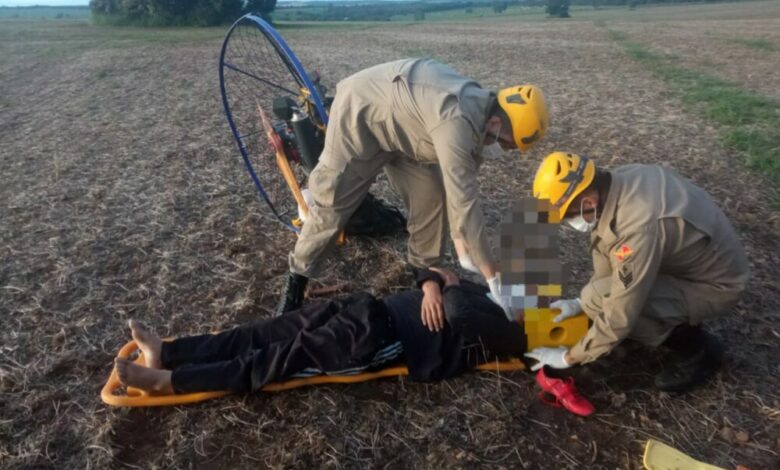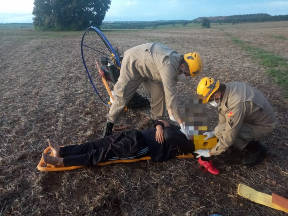 Bombeiros de Pires do Rio resgatam vítima de queda de paramotor