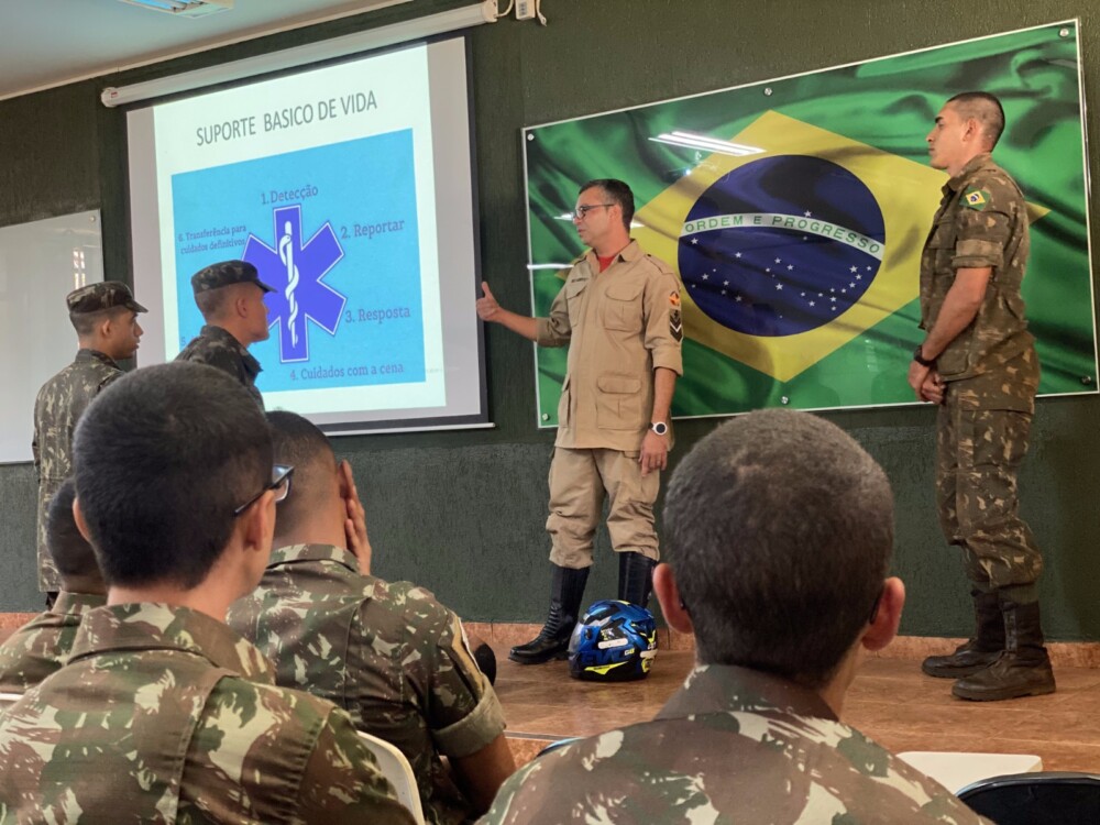 Bombeiros em Jataí realizam palestra sobre acidente de trânsito para militares do Exército Brasileiro
