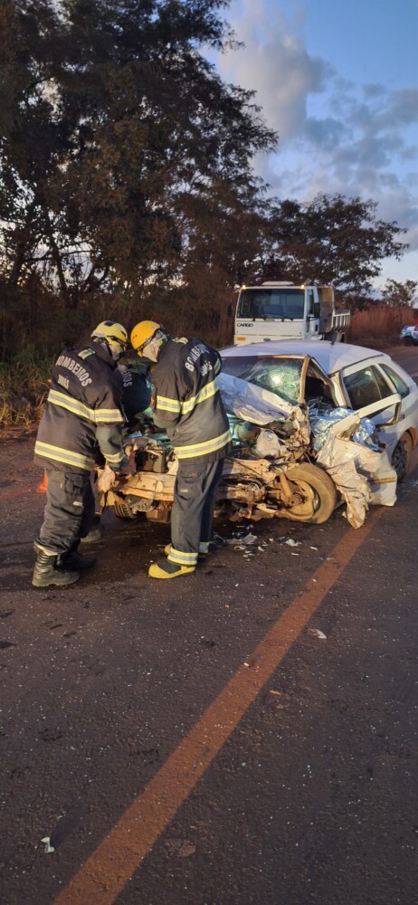 Bombeiros em Luziânia atendem grave colisão frontal envolvendo dois veículos