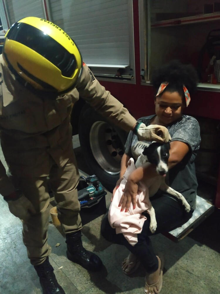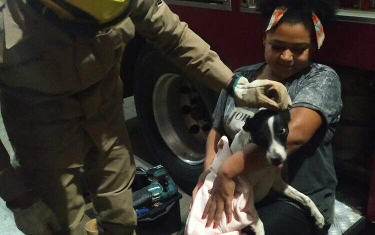 Bombeiros em Luziânia resgatam cadela que prendeu a cabeça em tubulação de cano