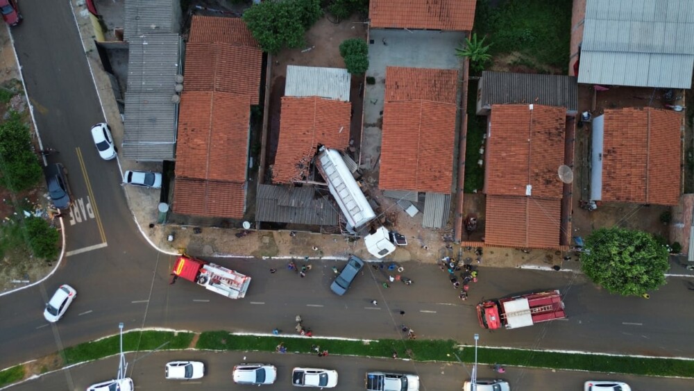 Bombeiros foram acionados, no final da tarde de quarta-feira, 27, em Mineiros para atender um acidente de trânsito envolvendo um caminhão de transporte de ração que desceu desgovernado pela avenida Contorno, próximo ao cruzamento do supermercado Davi. Segundo o condutor, o veículo, que estava estacionado após manutenção, começou a se movimentar sozinho na ladeira, atravessou o canteiro central e colidiu com uma moto, um carro estacionado e duas residências. O caminhão invadiu a primeira casa, danificando a varanda e parte da estrutura, e parou ao colidir com a sala e os cômodos de uma segunda casa, que teve a estrutura comprometida.