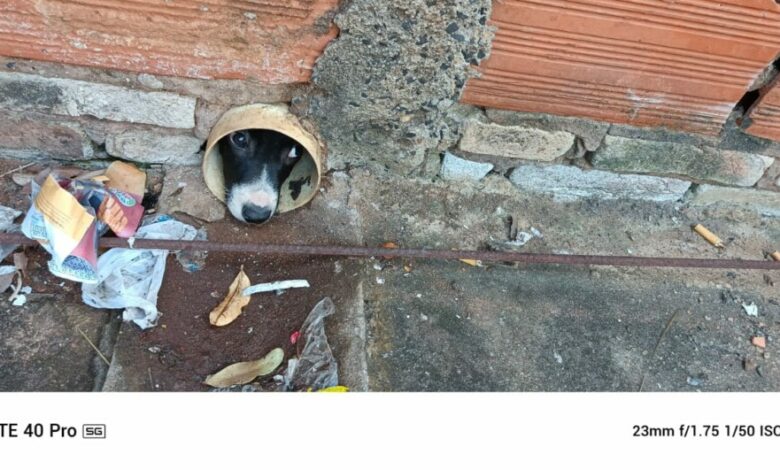 Bombeiros em Quirinópolis resgatam cão preso em cano