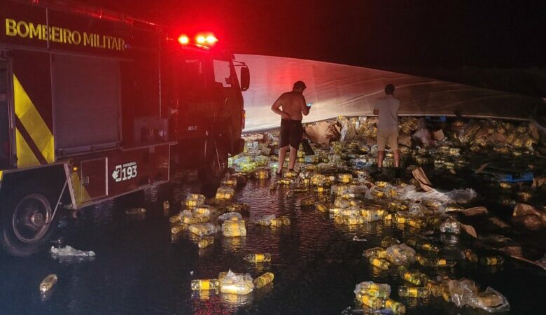 Bombeiros militares realizam resgate em tombamento de carreta em Itumbiara