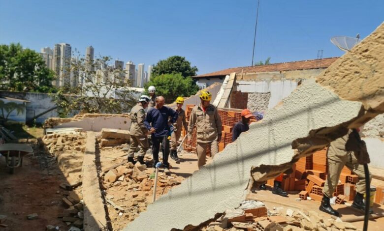 Bombeiros são acionados para resgatar vítima soterrada em canteiro de obras em Goiânia