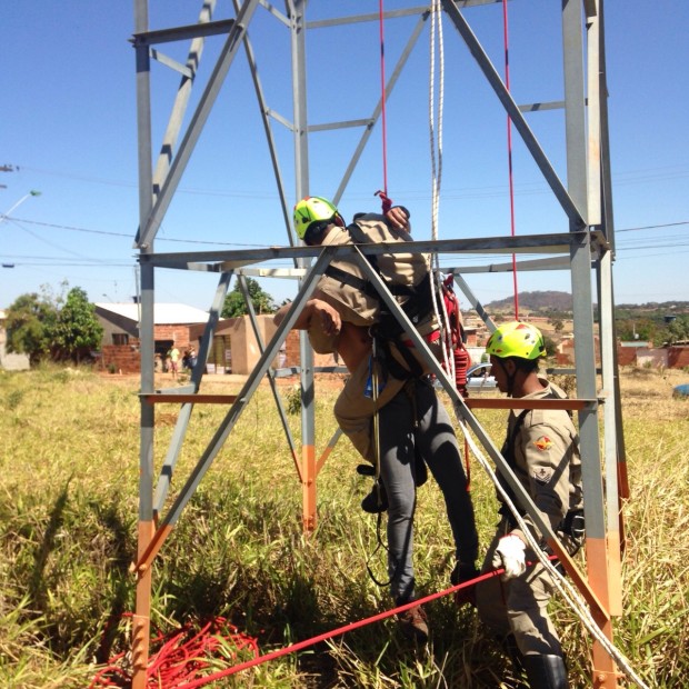 Na manhã de segunda-feira, 10, Bombeiros Militares  do 2º Batalhão Bombeiro Militar e de Inhumas resgataram um suicida que ameaçava se jogar de uma torre de celular de aproximadamente 20 metros de altura em Goianira. No local, a equipe de Bombeiros Militares comandada pelo 1º Tenente Gomes após aproximadamente 2 horas  de negociação e aproximação da vítima conseguiu segurá-la realizando o  resgate com êxito. A vítima logo após ser resgatada pelos Bombeiros desmaiou ainda no alto da torre. Foi utilizada técnicas de rapel e salvamento em altura para trazer a vítima com segurança até o solo. O rapaz foi encaminhado para avaliação médica. Confira fotos: