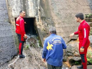 Equipe náutica do 1º BBM realiza vistoria em comporta da represa em Araçu