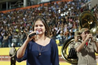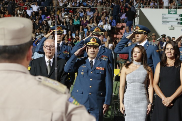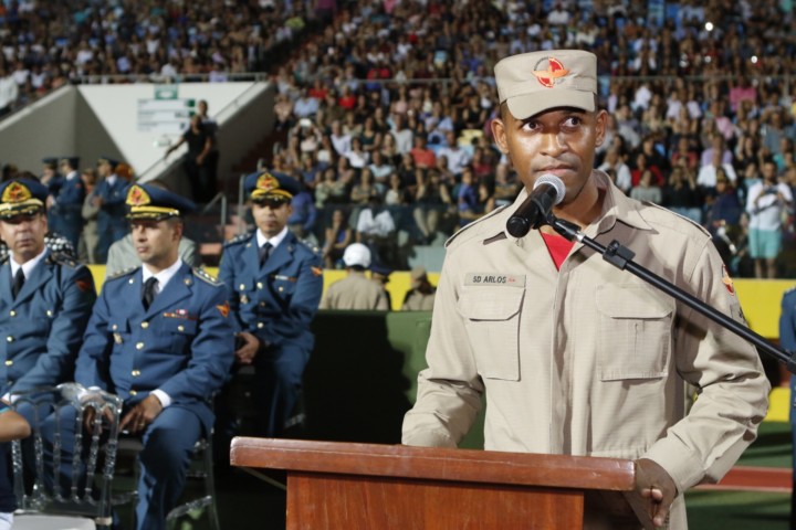 “Esses novos soldados são frutos do trabalho e das ações do excelentíssimo senhor governador José Eliton quando esteve à frente da Secretaria de Segurança Pública de Goiás. O Corpo de Bombeiros Militar reconhece e agradece o apoio incondicional dele na luta pela valorização do efetivo desta instituição”, destacou o Coronel Morais, em seu discurso. O Comandante Geral agradeceu ainda o secretário de Segurança Pública, Irapuan Costa Júnior, a quem tem como exemplo de homem público. “Obrigado pela constante orientação a este comando e pelo apoio valoroso às nossas ações. Senhor secretário, é um privilégio para todos nós termos um comandante como o senhor que segue ombro a ombro com a sua tropa”, disse. A cantora Maria Eugênia fez uma apresentação especial durante a solenidade ao lado da Banda Sinfônica do CBMGO.
