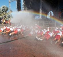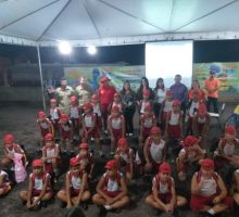 A Operação Férias Turista Seguro do ano de 2019 promoveu, neste último sábado, 27, a formatura de encerramento do Projeto Bombeiro Mirim – Anjos do Araguaia. A solenidade ocorreu no palco de eventos da praça principal de Aruanã e contou com a presença do Secretário de Turismo, Paulo Valério da Silva, acompanhado do comandante da operação férias, Tenente Coronel Ézio, além de diversas autoridades da área da educação do município. Simultaneamente, ocorreram solenidades de formatura em todos os sete municípios sedes do programa: Mozarlândia, Bandeirantes, Luiz Alves, Aragarças, Cocalinho, Britânia e Aruanã. Este ano, 240 alunos concluíram o curso e tornaram-se bombeiros mirins, multiplicadores da doutrina do Corpo de Bombeiros Militar. O curso, projeto social do Estado de Goiás em parceria com as prefeituras locais, teve a duração de 15 dias e possibilitou aos concluintes adquirirem conhecimentos em primeiros socorros, prevenção de acidentes domésticos, hierarquia e disciplina, noções de salvamento e princípios de combate a incêndio, além de valores como cidadania e civismo. Ao fim da solenidade, houve batismo com as águas do caminhão de combate a incêndio da corporação, ritual tradicional que marca o ingresso de cada bombeiro na corporação.