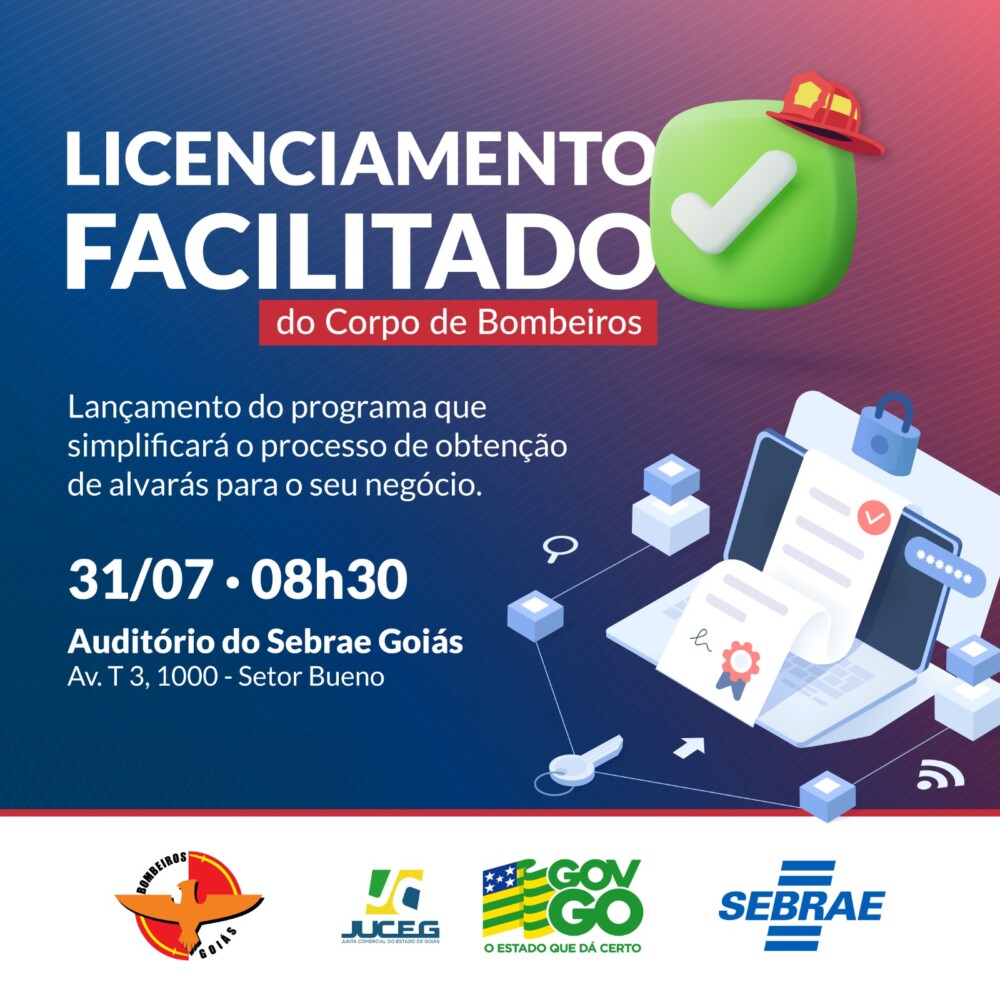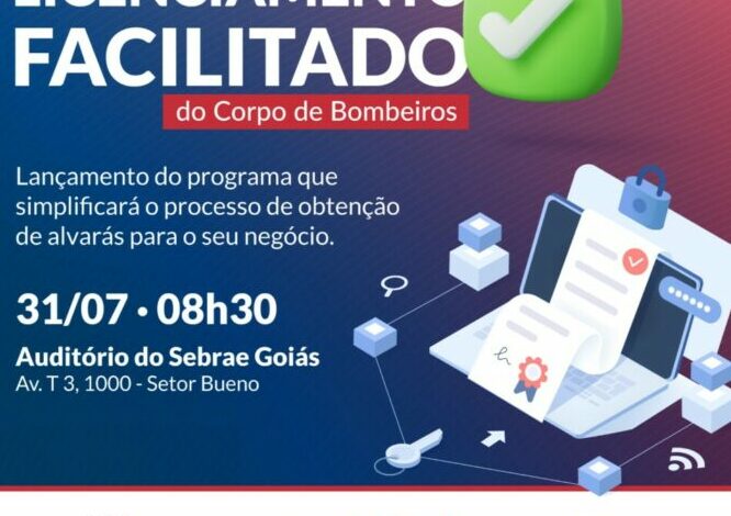Para simplificar a abertura de empresas em Goiás, o Corpo de Bombeiros Militar do Estado de Goiás, com apoio do Sebrae e da Junta Comercial do Estado de Goiás (Juceg), lança, no dia 31 de julho, o Programa Licenciamento Facilitado. A partir desta data, as empresas de até 750 metros quadrados poderão obter o Certificado de Conformidade (Cercon) da corporação de forma digital e imediata. O evento acontece às 8h30, no auditório do Sebrae, em Goiânia, e reunirá representantes do governo de Goiás, setor produtivo, de entidades, instituições e sindicatos goianos.