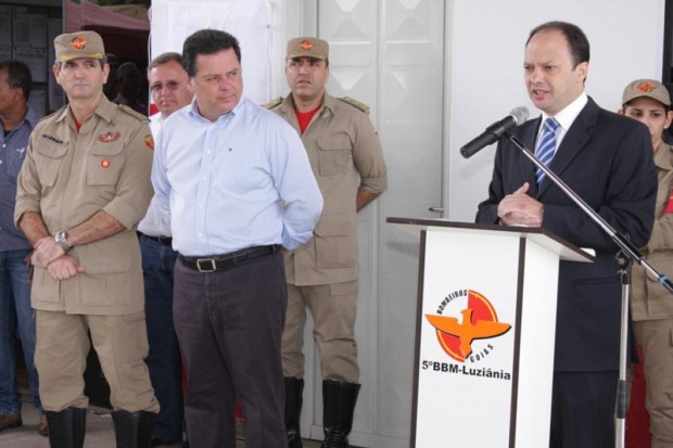 O primeiro compromisso do governador Marconi Perillo em Águas Lindas, na manhã de segunda-feira, dia 25, foi a inauguração da nova sede do Corpo de Bombeiros Militar do Estado de Goiás (CBMGO) na cidade. O governador estava acompanhado pelo Comandante Geral do CBMGO, Coronel Carlos Helbingen Júnior, e pelo secretário de Segurança Pública, Joaquim Mesquita. Em seu discurso, o secretário fez questão de ressaltar a atenção que o governador dá ao Entorno do DF. “Esta unidade do Corpo de Bombeiro, consolida o modelo de parceria entre município e Estado”, ressaltou.
