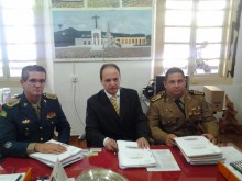 Início/ Governador Marconi Perillo promove por ato de bravura Bombeiros Militares que atuaram durante o acidente com o Césio 137/Coronel Helbingen do CBMGO, Secretário Joaquim Mesquita e Coronel Silvio da PMGO Coronel Helbingen do CBMGO, Secretário Joaquim Mesquita e Coronel Silvio da PMGO
