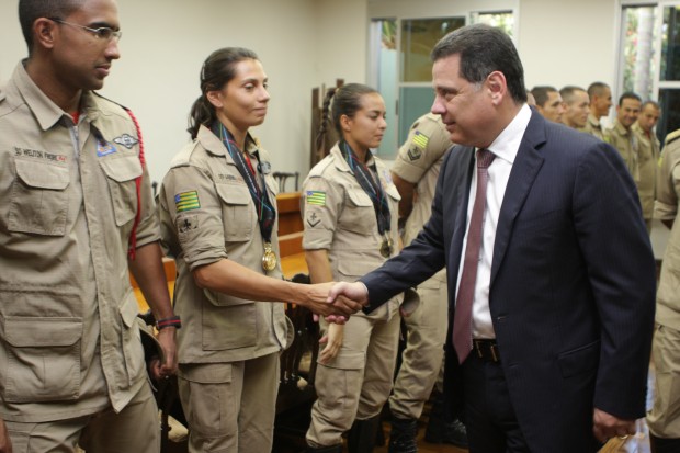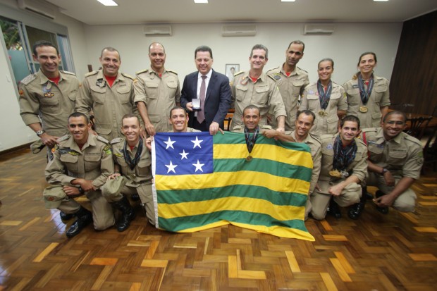 O Governador do Estado Marconi Perillo, recebeu na tarde de segunda-feira, 12, a Equipe de Bombeiros Atletas que participaram dos Jogos Mundiais na Irlanda do Norte. O evento, contou com a participação do Comandante Geral do Corpo de Bombeiros Militar, Coronel Carlos Helbingen Júnior, do Coronel Edson Costa, Superintendente Executivo da SSPJ, dentre outros oficiais.