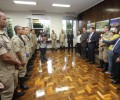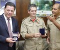 Na oportunidade, a equipe presenteou o Governador do Estado e o Comandante Geral do CBMGO com Medalhão Símbolo do Corpo de Bombeiros da cidade sede dos Jogos. Confira fotos:
