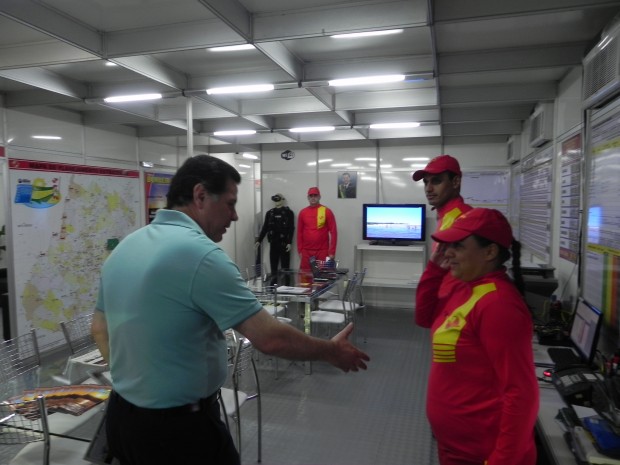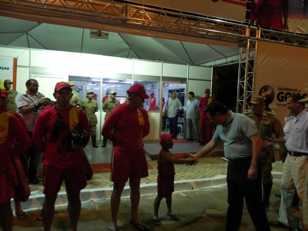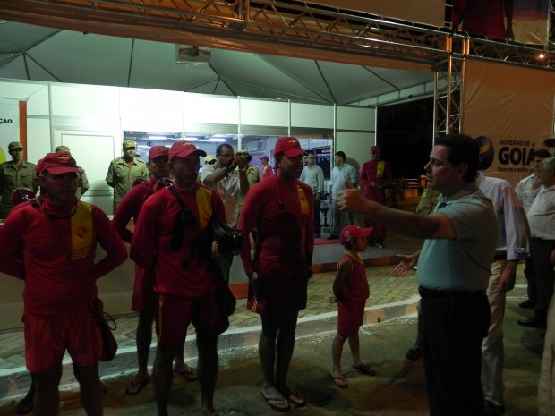 Em visita oficial a Aruanã, o governador Marconi Perillo visitou na noite de domingo, dia 7, o posto de comando da 39ª Operação Férias Turista Seguro do CBMGO. Ele foi recepcionado pelo Comandante Geral do CBMGO, Coronel Carlos Helbingen Júnior, que estava acompanhado do Comandante do 3º CRBM, Coronel Celso Ofugi, e do Comandante da 39ª Operação Férias, Tenente Coronel Queiroz. Ao conhecer a parte interna do Posto dos Bombeiros, instalado na cidade turística para o mês de julho, o governador Marconi Perillo elogiou o trabalho e a estrutura da Operação: “O Corpo de Bombeiros está muito bem. Parabéns, está tudo muito organizado”, destacou.