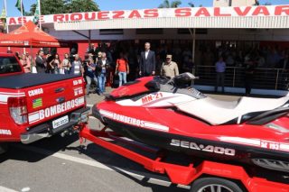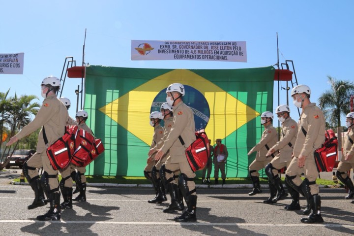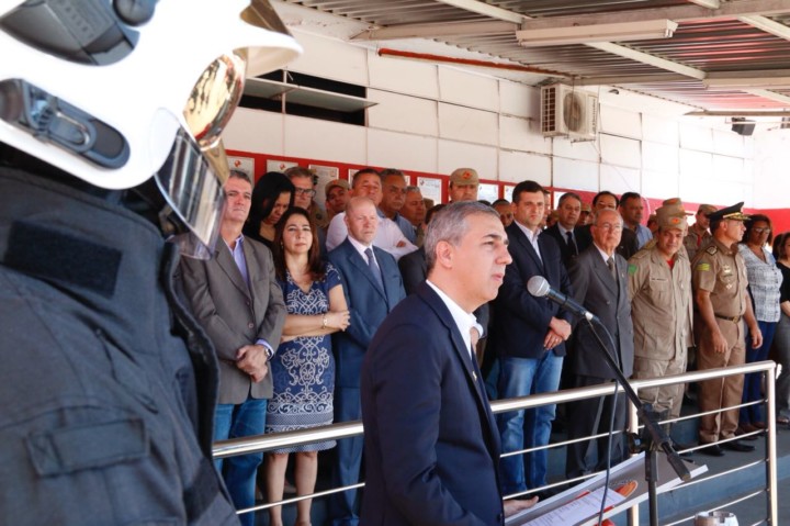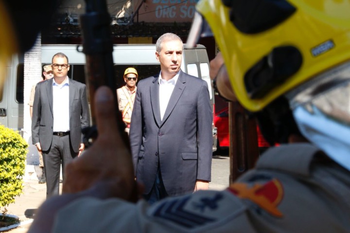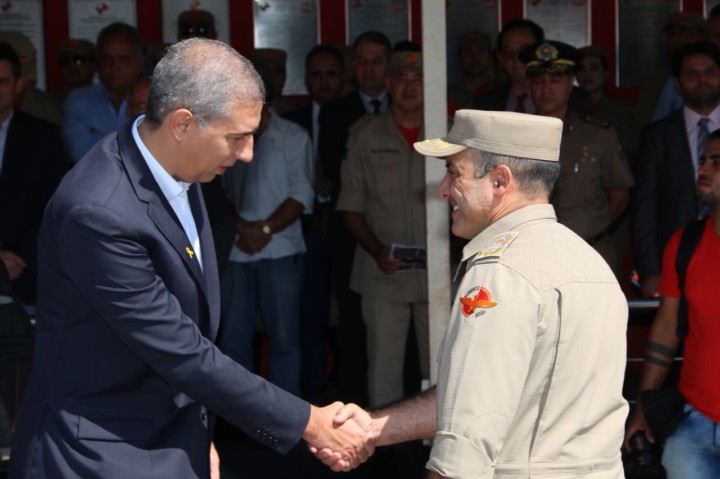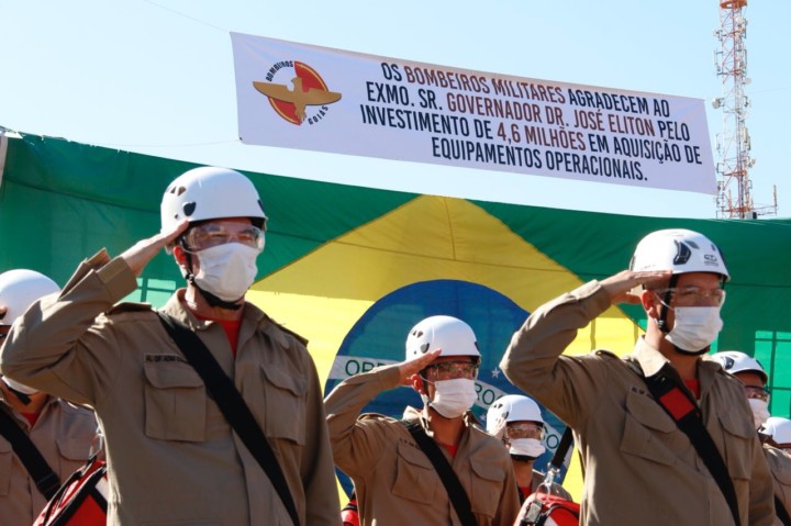 O Governador do Estado de Goiás, José Eliton, e o secretário da Segurança Pública, Irapuan Costa Júnior, entregaram na manhã desta sexta-feira, 11, ao Corpo de Bombeiros Militar do Estado de Goiás novas viaturas, materiais e equipamentos operacionais com investimentos de R$ 4.599.706,55. Os recursos são oriundos da Secretaria Nacional de Segurança Pública – SENASP e Fundo Especial de Reaparelhamento e Modernização do Corpo de Bombeiros Militar – FUNEBOM.