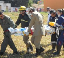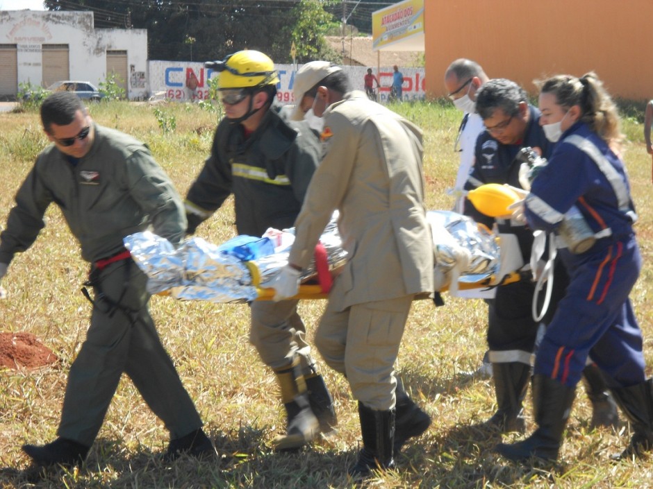 O Helicóptero Bombeiro 01 pousou em Jaraguá, na tarde de domingo, dia 28, para resgatar vítima de acidente de trânsito, do sexo masculino, de 40 anos. A 17ª Companhia Independente de Bombeiro Militar (17ª CIBM) de Jaraguá efetuou o apoio à ocorrência de saída de pista seguida de capotamento na BR 153 entre Rianápolis e Jaraguá. Além dos Bombeiros, o Samu também socorreu uma das vítimas que foi encaminhada ao Hospital Municipal de Jaraguá. Devido à gravidade de uma delas, que apresentava suspeita de trauma de base de crânio e poli traumatismo, o Helicóptero Bombeiro 01 realizou o transporte para atendimento médico em Goiânia. Confira fotos: