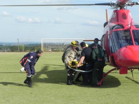 Helicóptero Bombeiro 01 resgata vítima de agressão em Pires do Rio