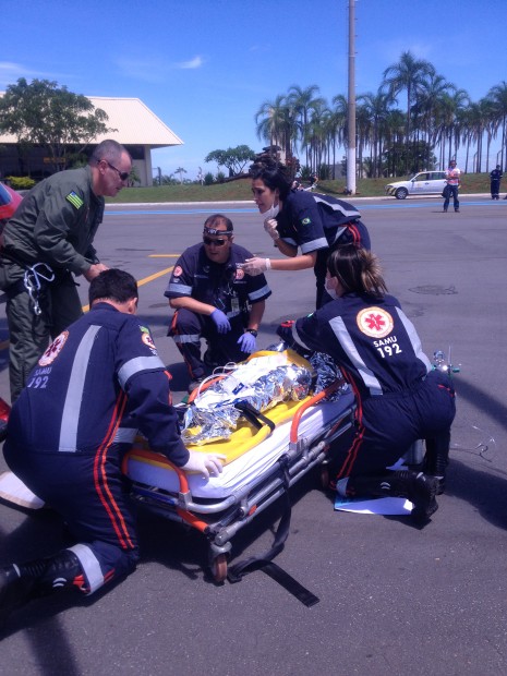 Na manhã de terça-feira, dia 18, o helicóptero Bombeiro 01 foi acionado para socorrer um senhor de 74 anos vítima de um acidente vascular cerebral hemorrágico (AVCH) e um infarto agudo do miocárdio (IAM). A vítima estava em Caldas Novas e necessitava de atendimento especializado com urgência. A equipe do helicóptero, formada pelos Capitães Alberto e Igor, Subtenente Tiago, o médico Scalia e o enfermeiro Silvio Queiroz, ambos do Samu, fez todos os procedimentos necessários durante o voo de aproximadamente 40 minutos. A vítima foi entregue com vida à equipe médica do Hospital de Urgências de Goiânia.