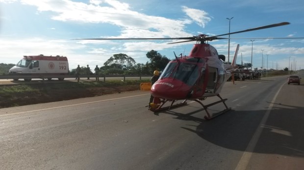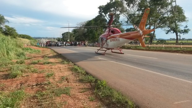 Helicóptero Bombeiro 1 socorre duas vítimas de acidente automobilístico em Inhumas e Brazabrantes