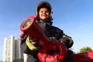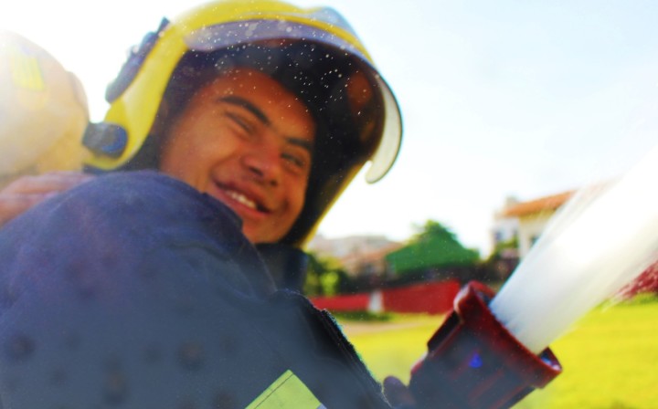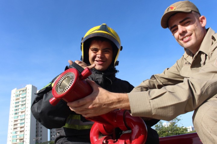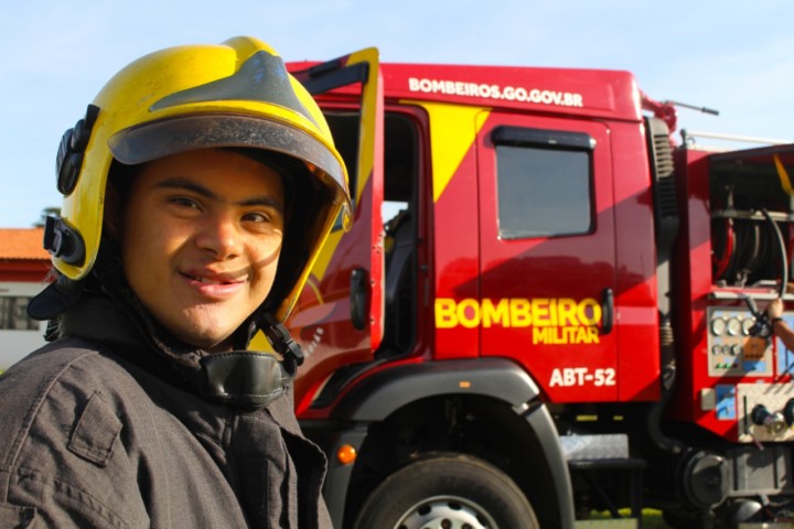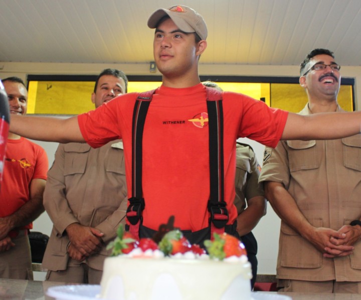 Apaixonado desde menino pelo trabalho do Corpo de Bombeiros Militar do Estado de Goiás, o jovem Withener Marinho Gomes Duarte, que completa 22 anos nesta quinta-feira, 17, realizou o sonho de visitar um quartel do CBMGO. Ele foi recepcionado pela equipe do 16º BBM, em Goiânia, na manhã desta quarta-feira, 16. O rapaz que síndrome de down pode acompanhar um pouco do trabalho dos bombeiros e conhecer as viaturas e equipamentos utilizados no trabalho de resgate, combate a incêndio e busca e salvamento. Ao final da visita, Withener ganhou de presente um parabéns especial da equipe de plantão com direito a bolo e muitos abraços.