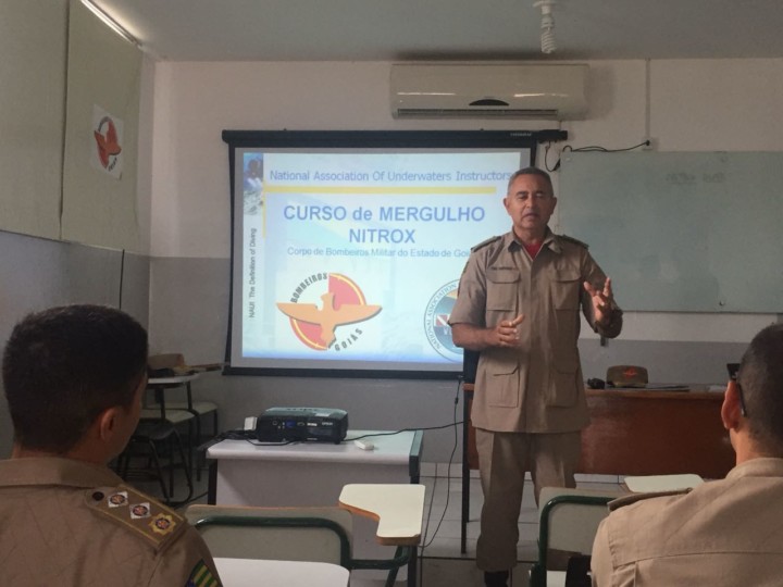 O Corpo de Bombeiros Militar do Estado de Goiás (CBMGO) deu início na manhã desta terça-feira, 12, ao Curso de Especialização em Mergulho com Nitrox, também conhecido como ar enriquecido (com maior concentração de oxigênio do que o ar atmosférico). O treinamento é realizado em parceria com a Associação Nacional de Underwater Instructors (NAUI), uma das maiores certificadoras do Brasil e reconhecida internacionalmente pelo trabalho para o desenvolvimento de profissionais mergulhadores. Estão sendo capacitados 35 mergulhadores do CBMGO para mergulharem com Nitrox.