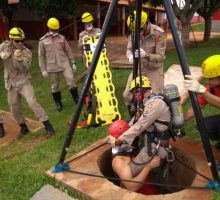 Militares de Anápolis realizam simulado de atendimento a vítima inconsciente, com fratura em membro inferior, em poço – cisterna de 12m de profundidade.