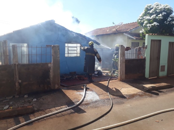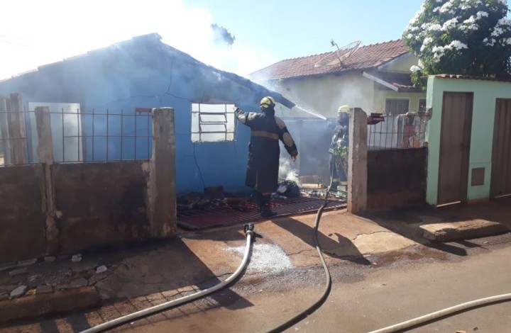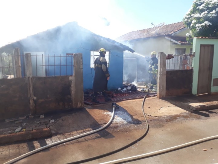Bombeiros Militares de Itumbiara combatem incêndio em residência